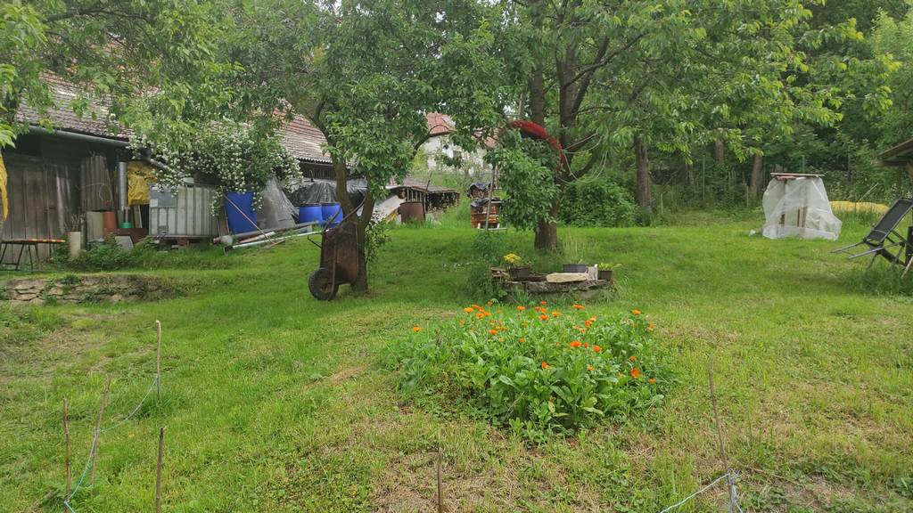 Chalupa disponuje kuchyní (podlaha - kachle), pokojem (koberec) a koupelnou (sprchový kout) se záchodem (splachovací), se základním vybavením. Je vytápěna kamny na dřevo, teplá voda je ohřívaná z FVE panelů (pokud slunce nesvítí = není moc teplé vody). U chalupy se nachází zahrada, částečně na rovině, většina ve svahu, většina plochy je tráva.